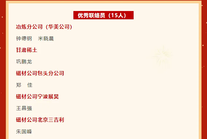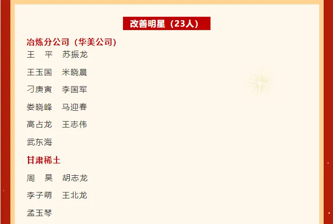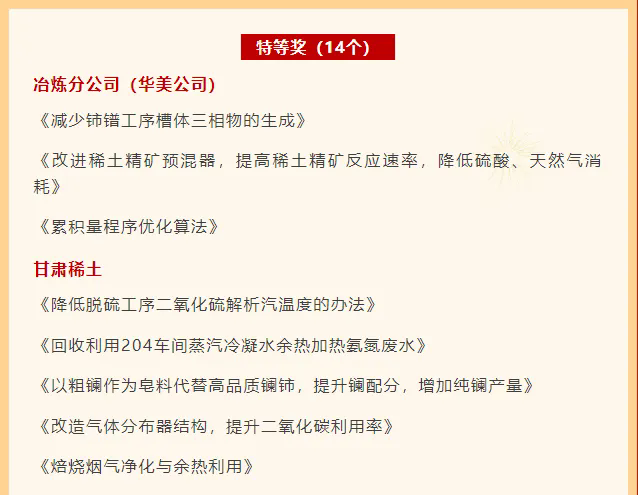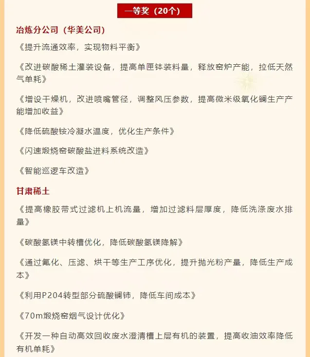 近日,北方稀土發(fā)布第十二階段員工自主改善獲獎項目,由公司各生產(chǎn)單位、管理部門提出的11個項目在第十二階段員工自主改善工作中喜獲殊榮,其中榮獲特等獎5項、一等獎6項。公司同時榮獲北方稀土第十二階段員工自主改善優(yōu)秀組織單位榮譽稱號,5名職工獲評“員工自主改善明星”榮譽稱號,1名職工獲“優(yōu)秀聯(lián)絡(luò)員”稱號。