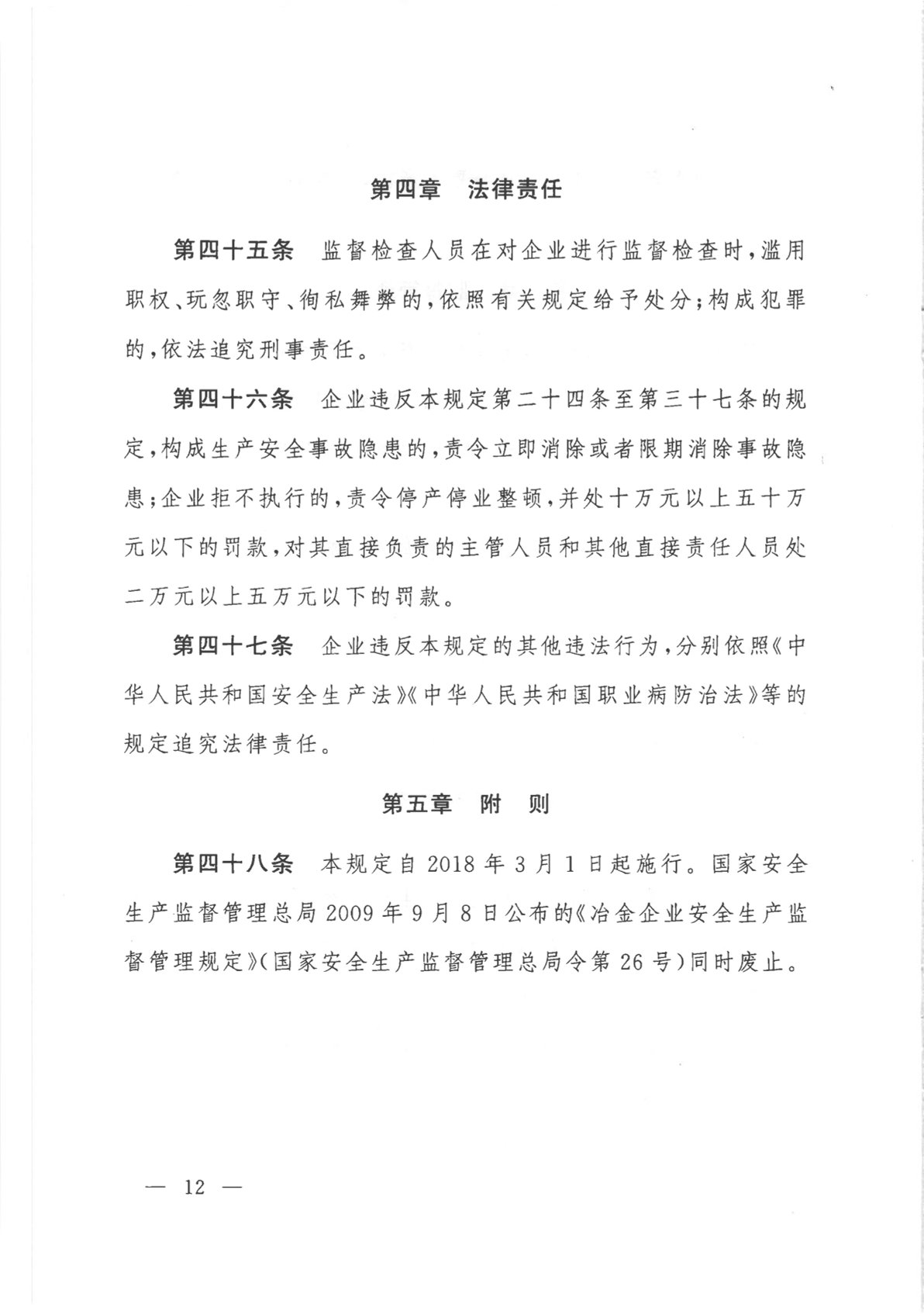 冶金企業(yè)和有色金屬企業(yè)安全生產(chǎn)規(guī)定